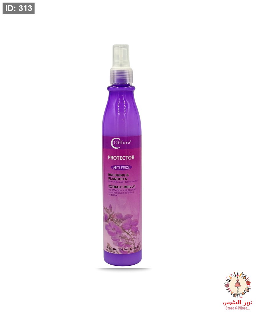 بخاخ الحماية للشعر Coiffure Protector Anti-Frizz غني بخلاصة نباتية مرطبة، يساعد على حماية الشعر أثناء التصفيف بالسيشوار أو المكواة، ويقلل من التجعد ويمنح شعرك نعومة ولمعاناً صحياً. يعمل على ترطيب الشعر بعمق ويتركه أكثر انسيابية وحريراً مع مظهر لامع وحيوي. مناسب لجميع أنواع الشعر وخاصة المتطاير والجاف.