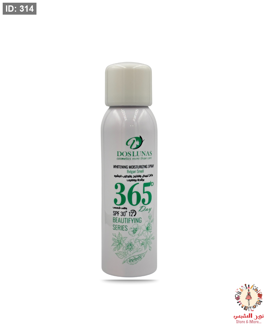 سبراي Dos Lunas Whitening Moisturizing Spray بتركيبة خفيفة وسريعة الامتصاص، يعمل على ترطيب البشرة وتفتيحها مع حماية فعّالة من أشعة الشمس بفضل عامل الحماية SPF 30. يمنح البشرة مظهراً مشرقاً ونضارة طبيعية برائحة عطرية فاخرة (Bvlgari Smell). مناسب للاستخدام اليومي ويترك البشرة ناعمة ومنتعشة طوال اليوم.