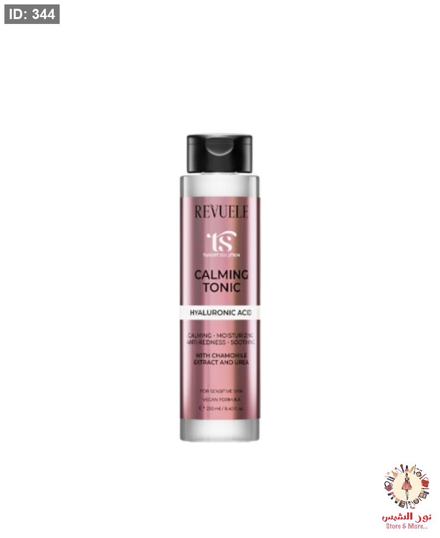 تونر Revuele Calming Tonic Hyaluronic Acid مصمم خصيصاً للبشرة الحساسة والمعرضة للاحمرار. بفضل تركيبته الفريدة التي تحتوي على حمض الهيالورونيك، مستخلص البابونج، واليوريا، يمنح بشرتك عناية متكاملة: