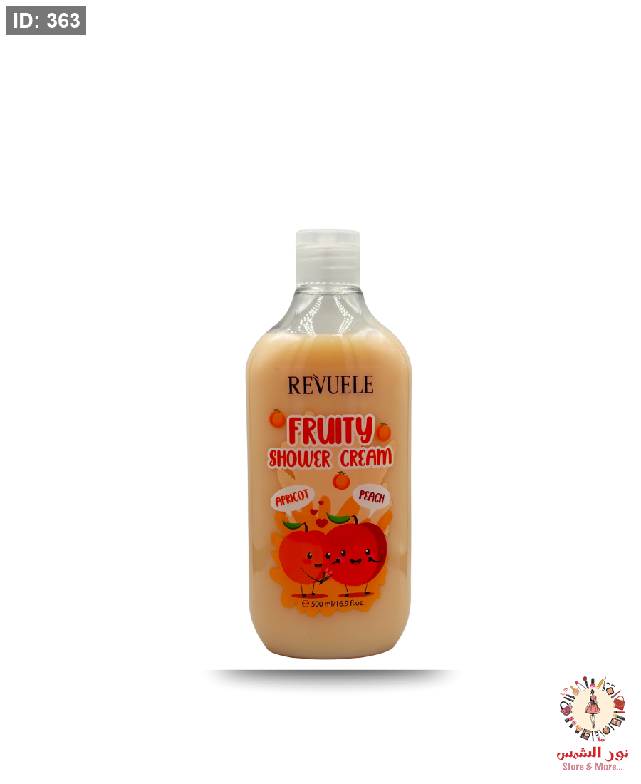 كريم الاستحمام Fruity Shower Cream من Revuele يمنحك تجربة استحمام فاخرة بمزيج طبيعي من المشمش المغذي والخوخ المنعّم.