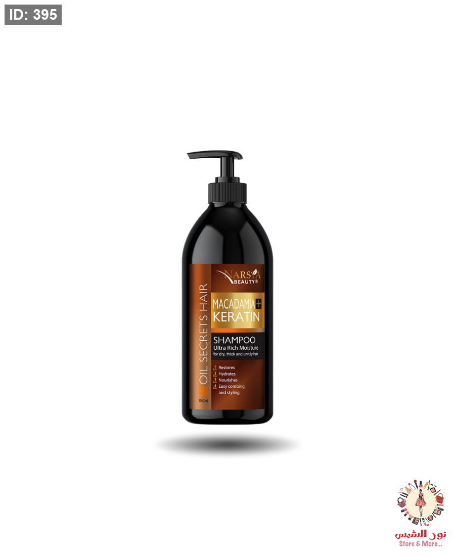 دلّلي شعرك بعناية غنية مع Narsya Beauty Macadamia + Keratin Shampoo المصمم خصيصًا لترطيب الشعر الجاف والكثيف والمجعد.