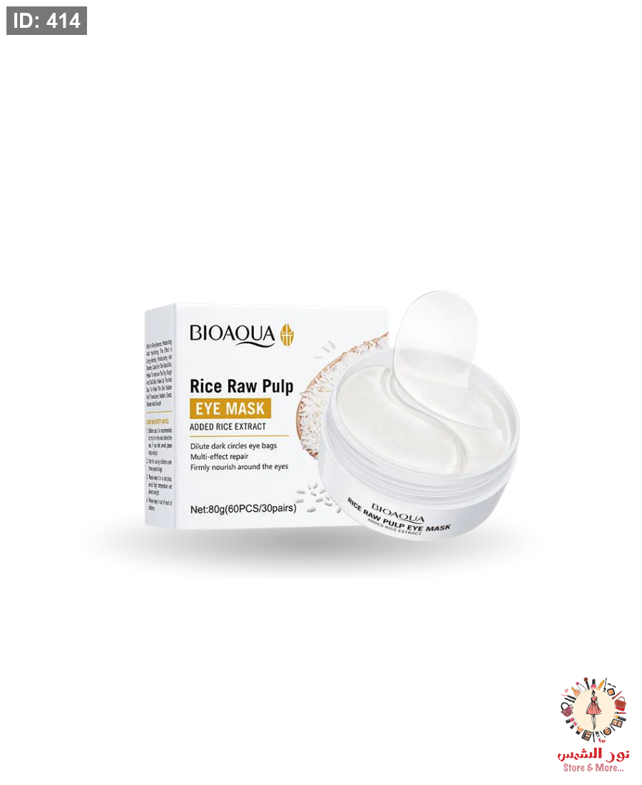 دلّلي عينيك مع Bioaqua Rice Raw Pulp Eye Mask الغني بخلاصة الأرز الطبيعي الذي يعمل على تفتيح البشرة حول العين وتقليل مظهر الانتفاخ والهالات السوداء.